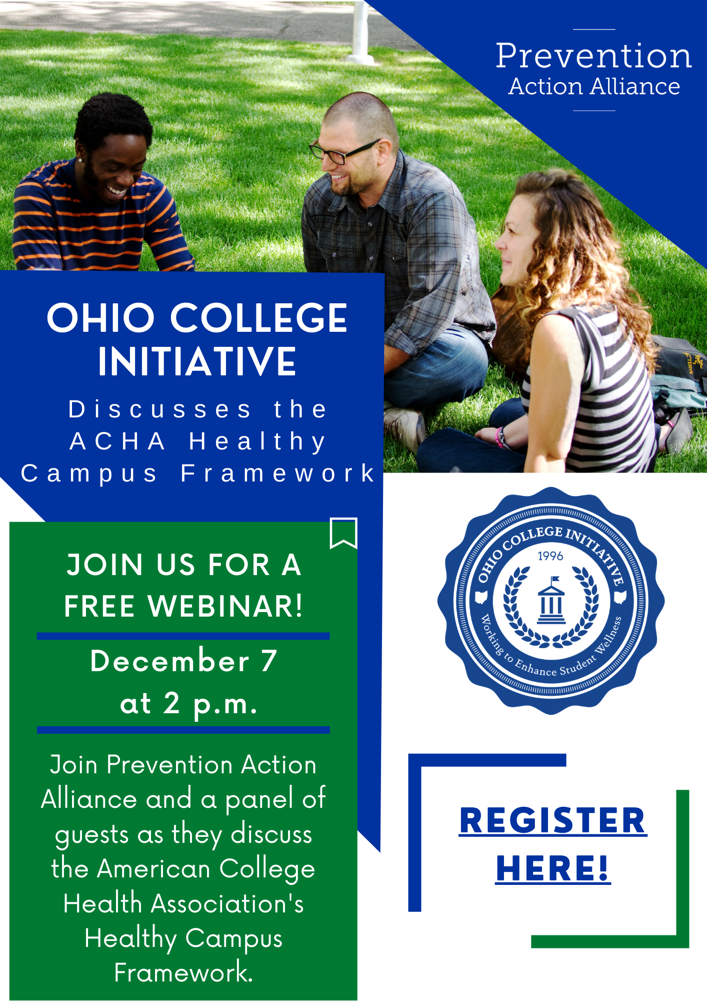 Also, please find attached registration details for an upcoming webinar hosted by Prevention Action Alliance and the American College Health Association.