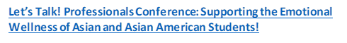 [Let’s Talk! Professionals Conference: Supporting the Emotional Wellness of Asian and Asian American Students!]http://www.talkhgse.org/