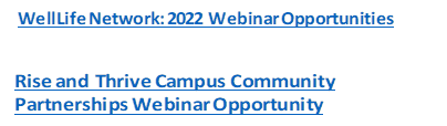 [WellLife Network: 2022 Webinar Opportunities ,Rise and Thrive Campus Community Partnerships Webinar Opportunity]