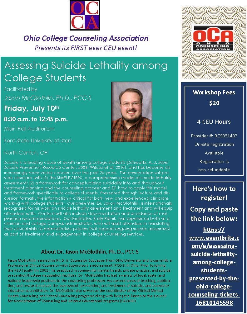 REGISTER AT: https://www.eventbrite.com/e/assessing-suicide-lethality-among-college-students-presented-by-the-ohio-college-counseling-tickets-16810145598