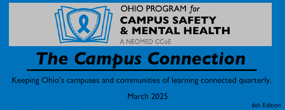 The March 2025 edition of The Campus Connection is here! Readers can look forward to reading about Washington State College of Ohio's P.S. I Love You Day, wellness advice from Ruth Simera, M.Ed, LSW, Executive Director, Coordinating Centers of Excellence, NEOMED, a student spotlight, upcoming training and funding opportunities, and much more!